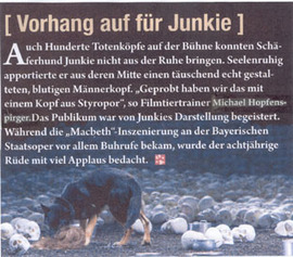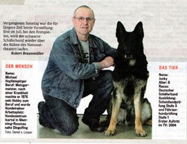 17 Auftritte in der bayr. Staatsoper in München mit unserem Schäferhund Junky